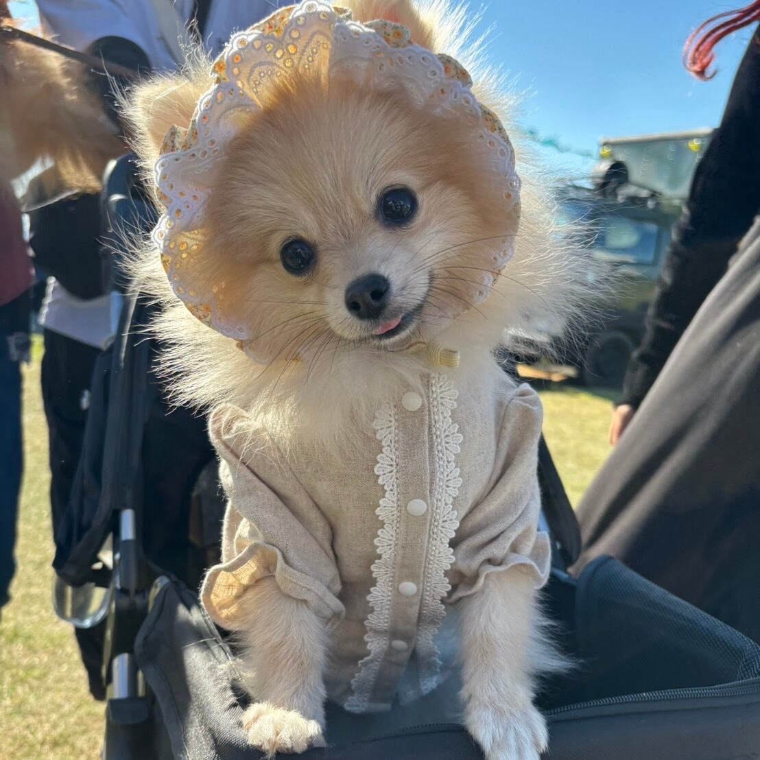 別売りのケープとの相性がよく、同時にご着用いただくのがオススメ!お持ちのお洋服とも合わせやすいかと思います。