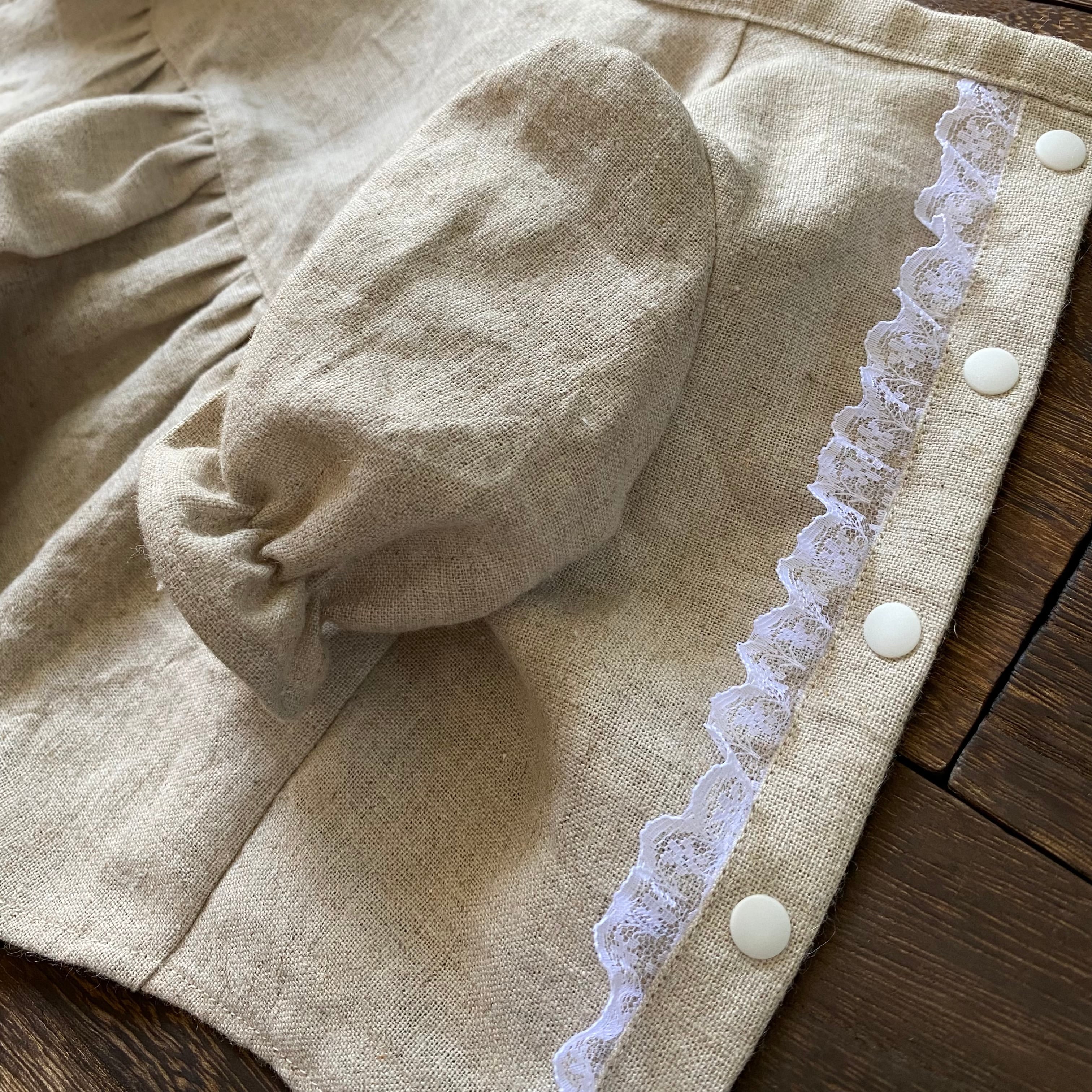 とってもシンプルなワンピースで、前ボタン箇所のみレースを付けました。さりげない可愛いさがポイントです❃︎